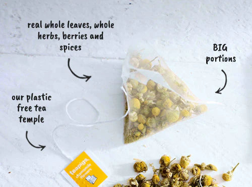 And so the tea temple was born – a roomy, biodegradable mesh bag, which offers all the space whole leaves need to release their big, bold, beautiful flavour. Loose tea – without the fuss! (although we do have loose tea as well, if you like a bit of fuss).